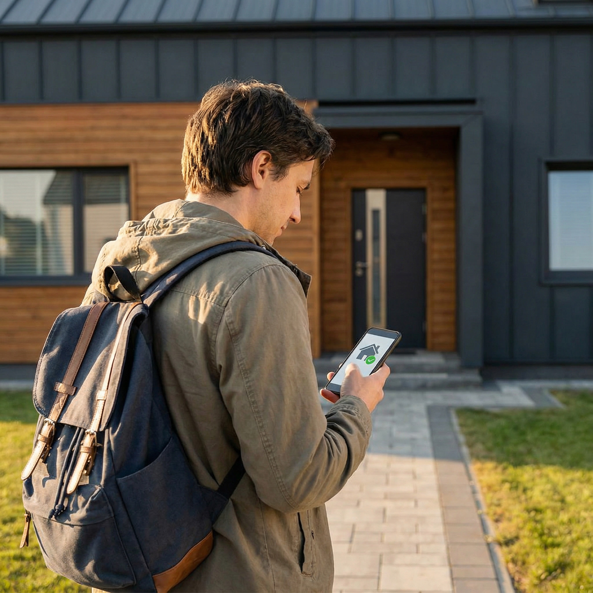 Geofencing creates an invisible boundary around your home (typically 500–1,500 feet). When your phone crosses that boundary: